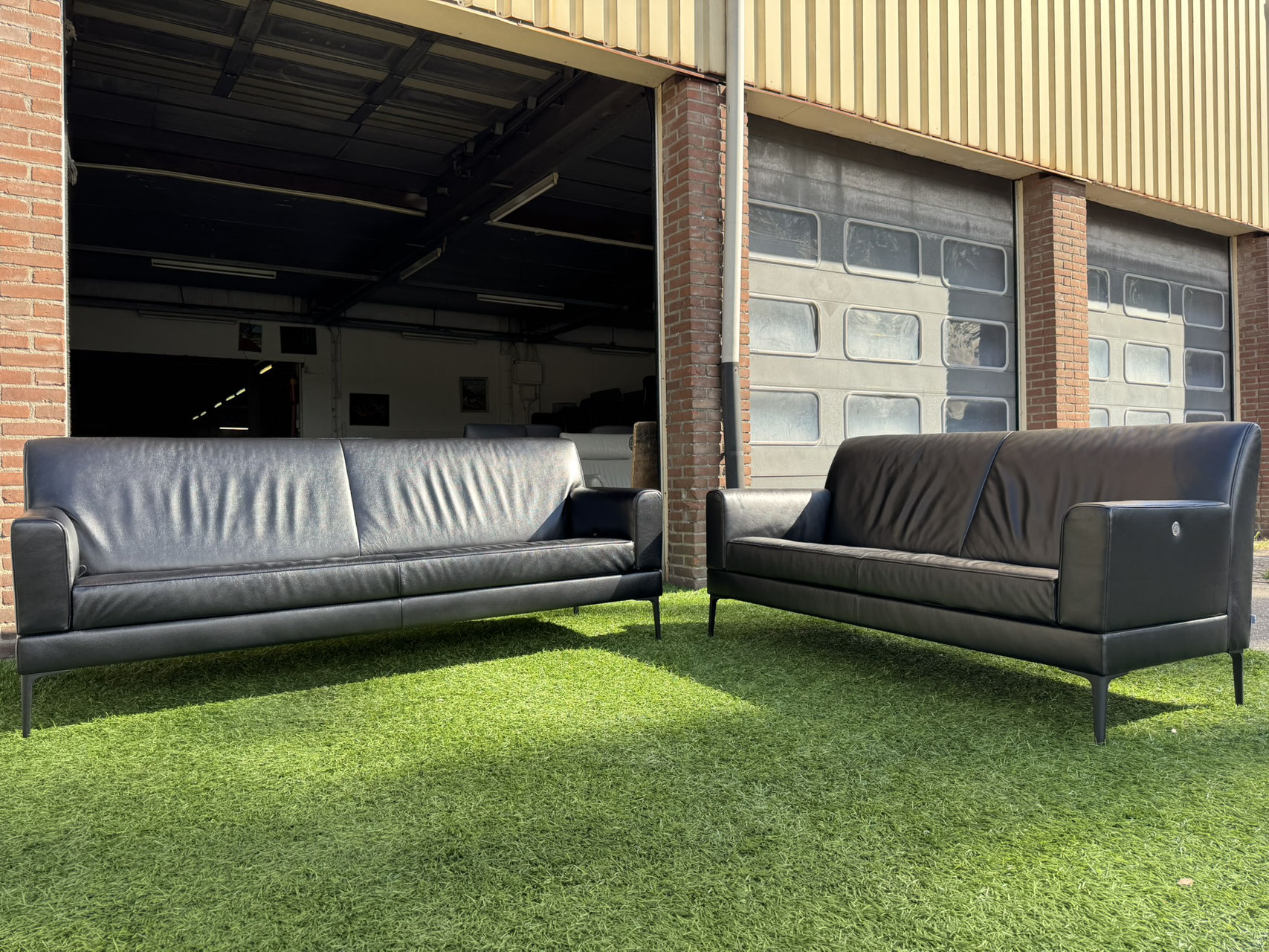 Betreft twee schitterende zwart leren Rolf Benz Linea banken. Met strakke vormgeving en met verschillende mogelijkheden wat betreft design, zithoogte en zitcomfort.