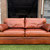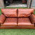 Betreft een LEOLUX by Antipode terracotta leren 2 zit bank met 2 fauteuils. Zitussens en rugkussens kunnen los, wat het ideaal maakt om schoon te maken Verkeert in