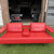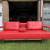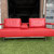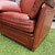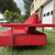 2 armkussens. Bekleed met 1e klas kwaliteit soepel leer. Kleur rood. Zitting van de bank is verstelbaar. Afkomstig uit