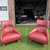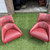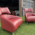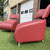 Betreft twee leren (handmatig en elektrisch) verstelbare relax stoelen! Kleur rood. Leer. Hoofdsteunen zijn verstelbaar. Elektrische stoel werkt op accu. In zeer goede